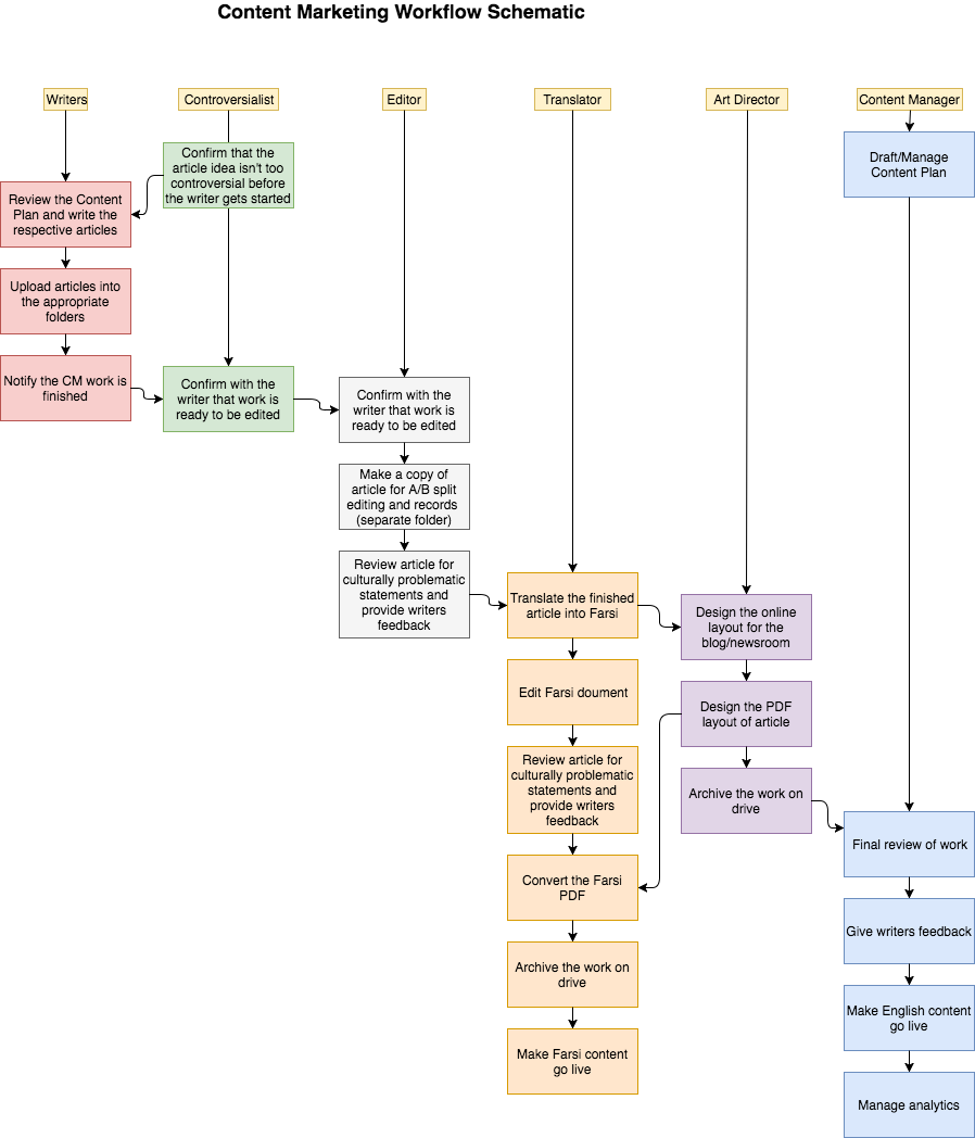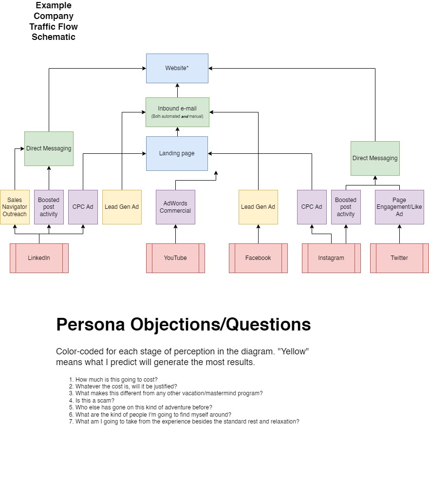 Please see attached sample content flows and workflow schematics that support my marketing strategies: