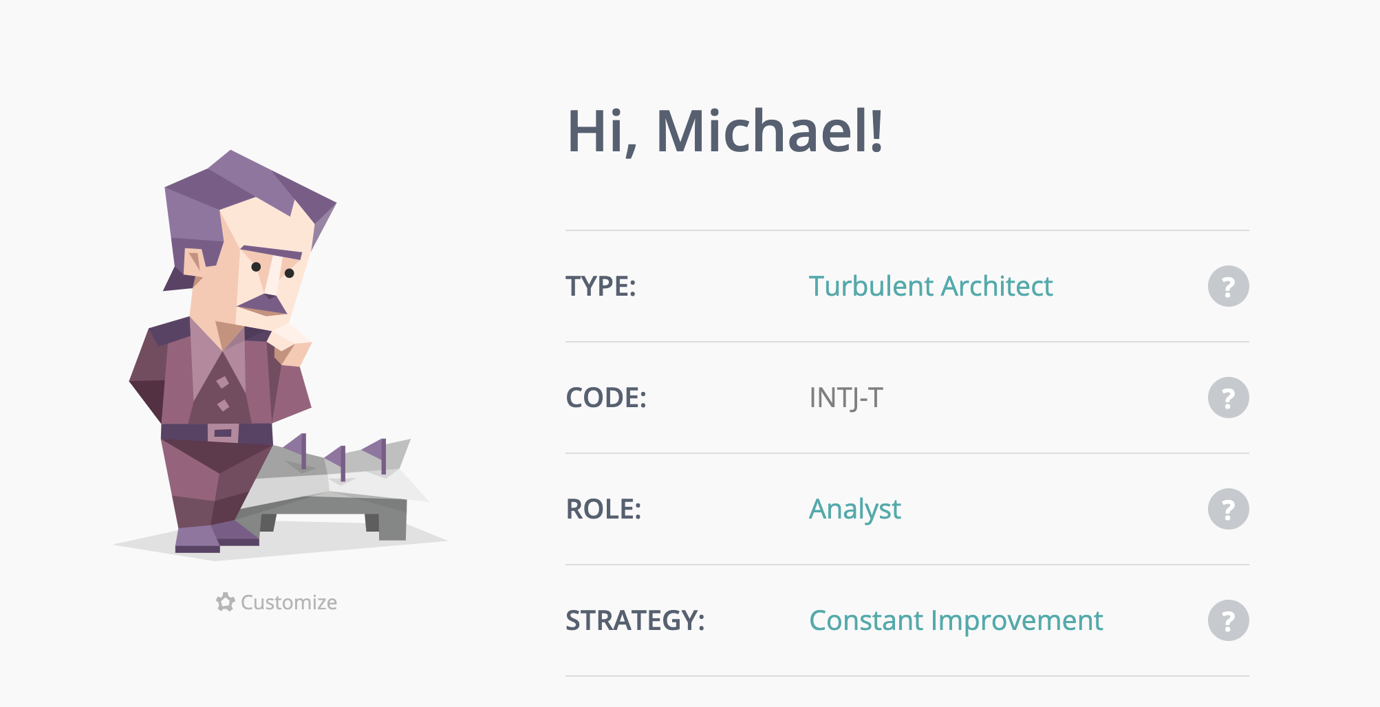 My Myers Briggs personality type is INTJ.